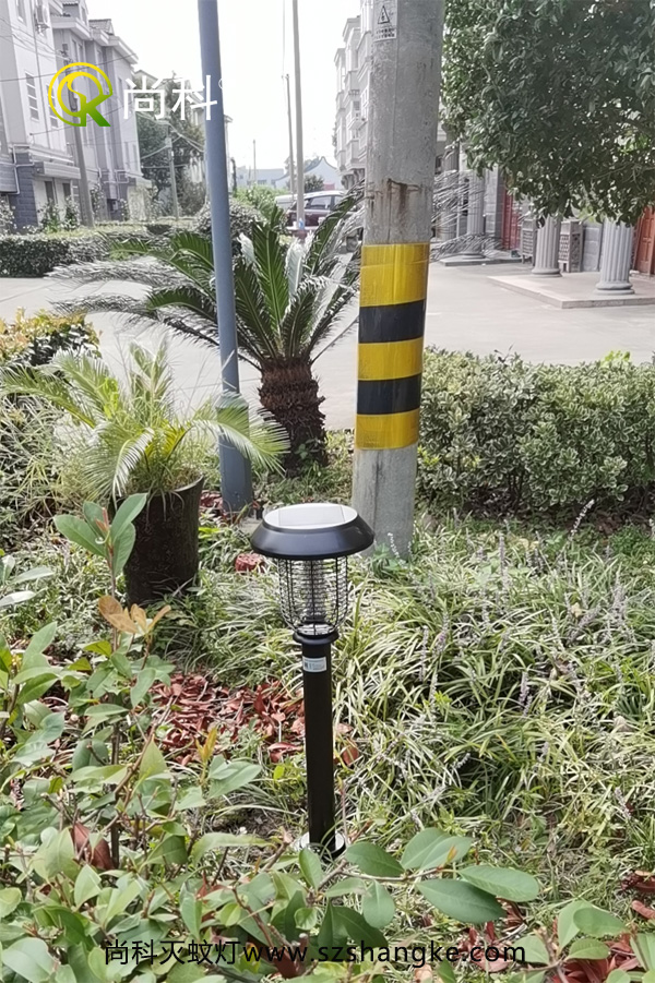 黑色太陽能滅蚊燈放在草坪中也是很協(xié)調(diào)的