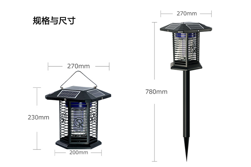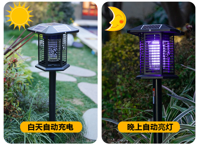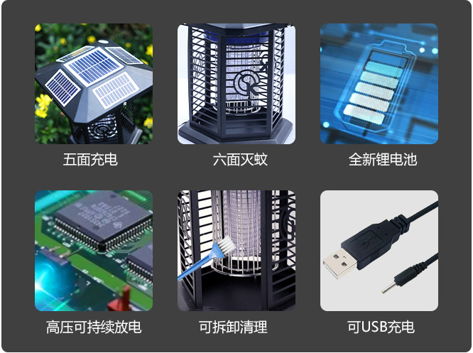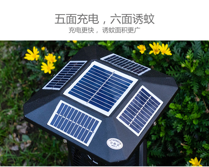 3、五面太陽能板,充電更快。六面誘蚊電網(wǎng),面積更廣。